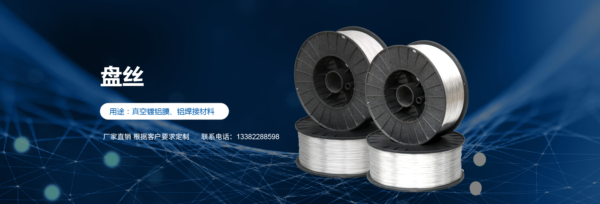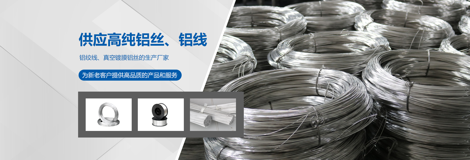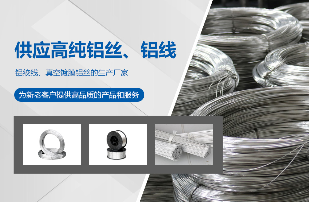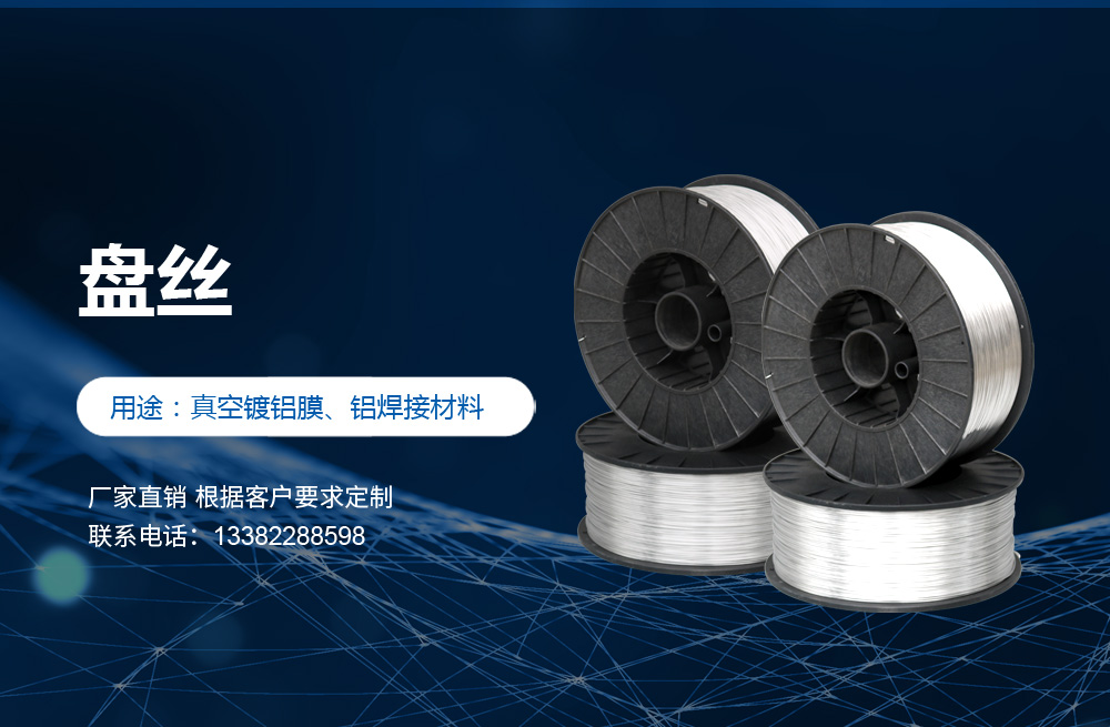 高純度鋁絲:公司主打產品。SGS認證產品,適用于真空鍍鋁。純度99.9%,可為客戶量身定做生產的各盤裝鋁絲、鋁直條。產品應用領域十分廣泛,如:真空鍍鋁膜、電器儀表、電子、家電業、電線電纜業、建筑裝飾業、五金裝飾業、IT電腦業、廣告裝飾業、醫療器械、工藝制品、防腐制品(大型港口、橋梁、碼頭)、食品包裝容器、紡織服裝等。